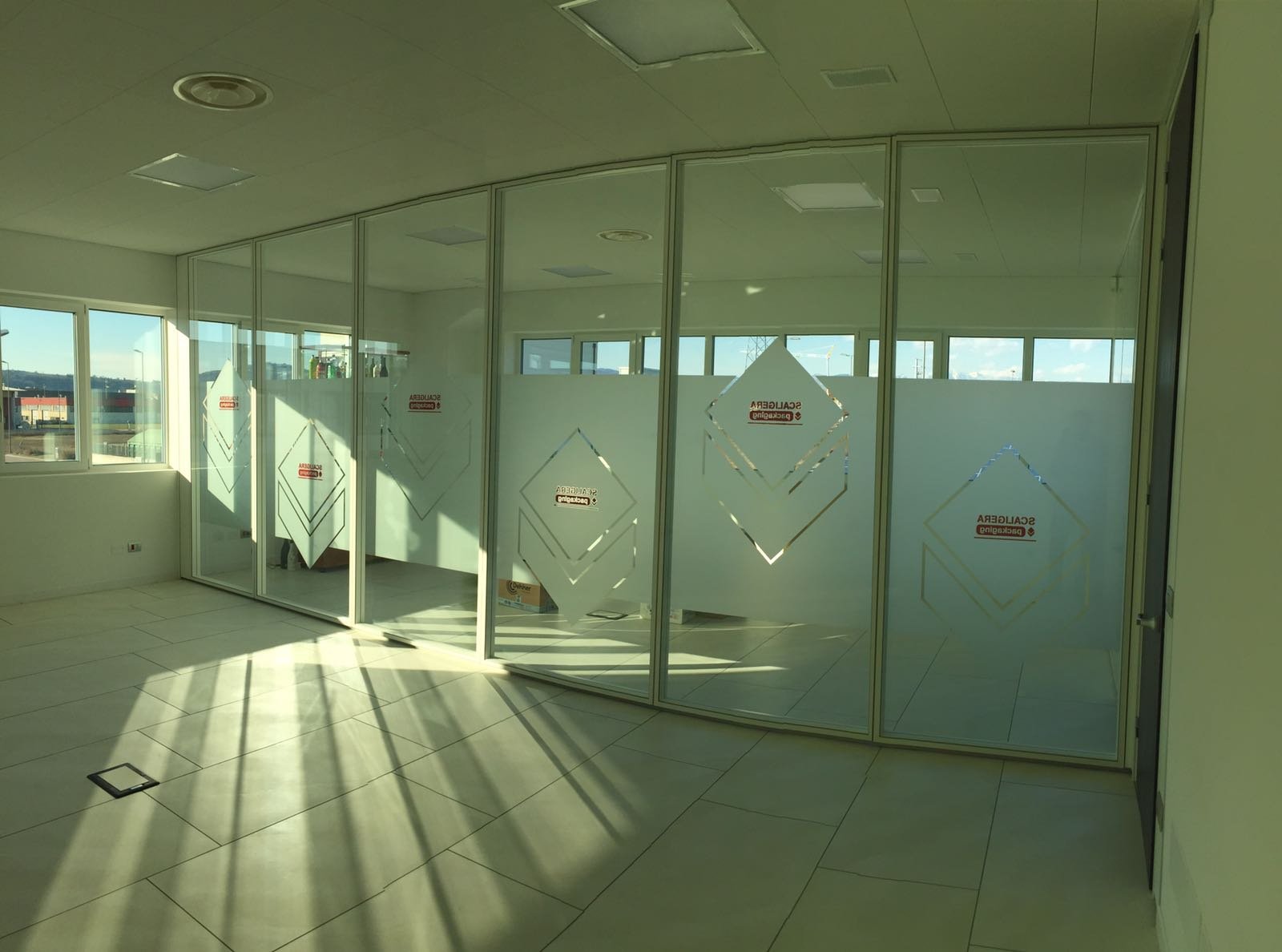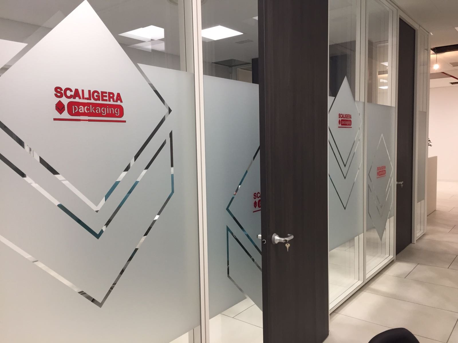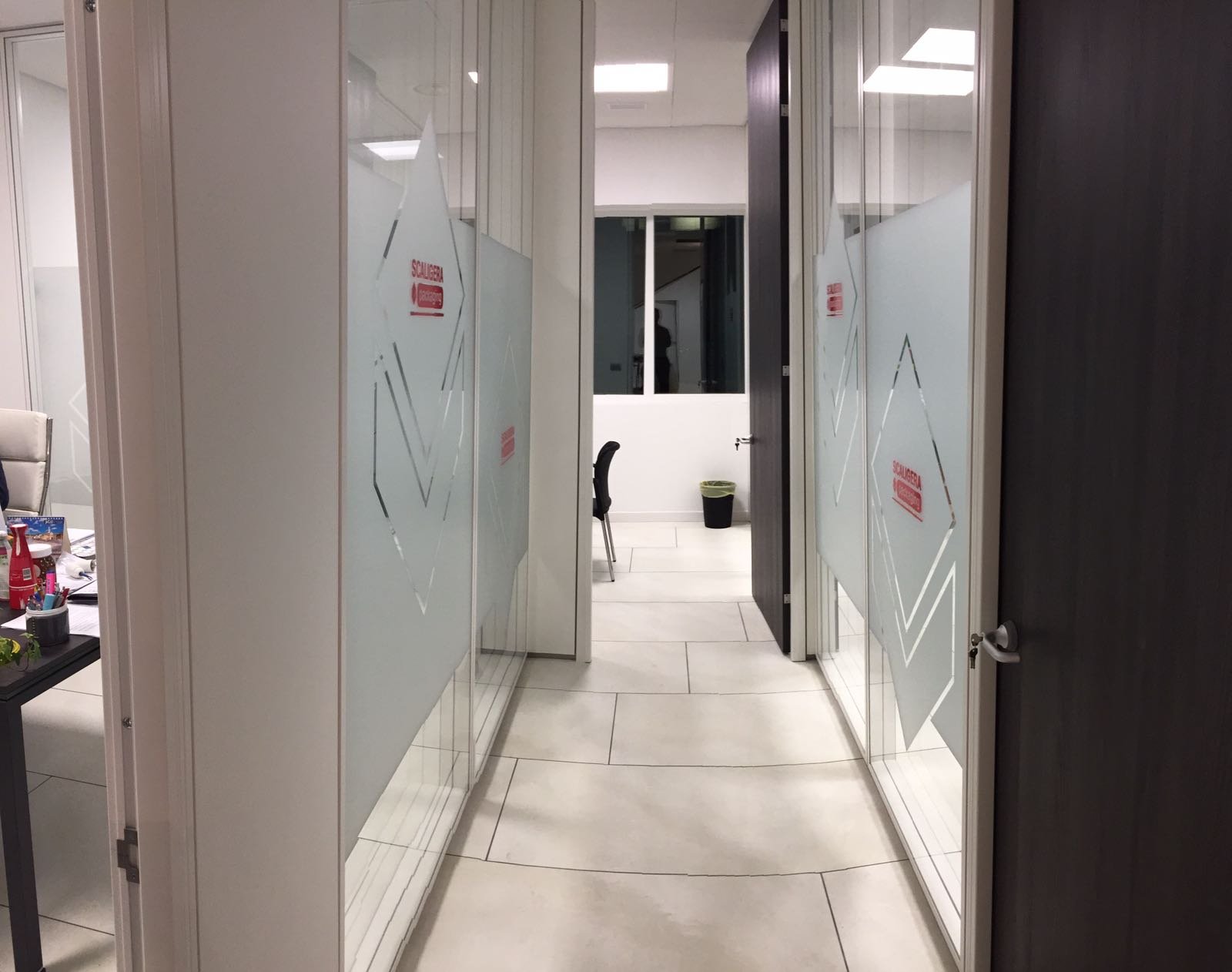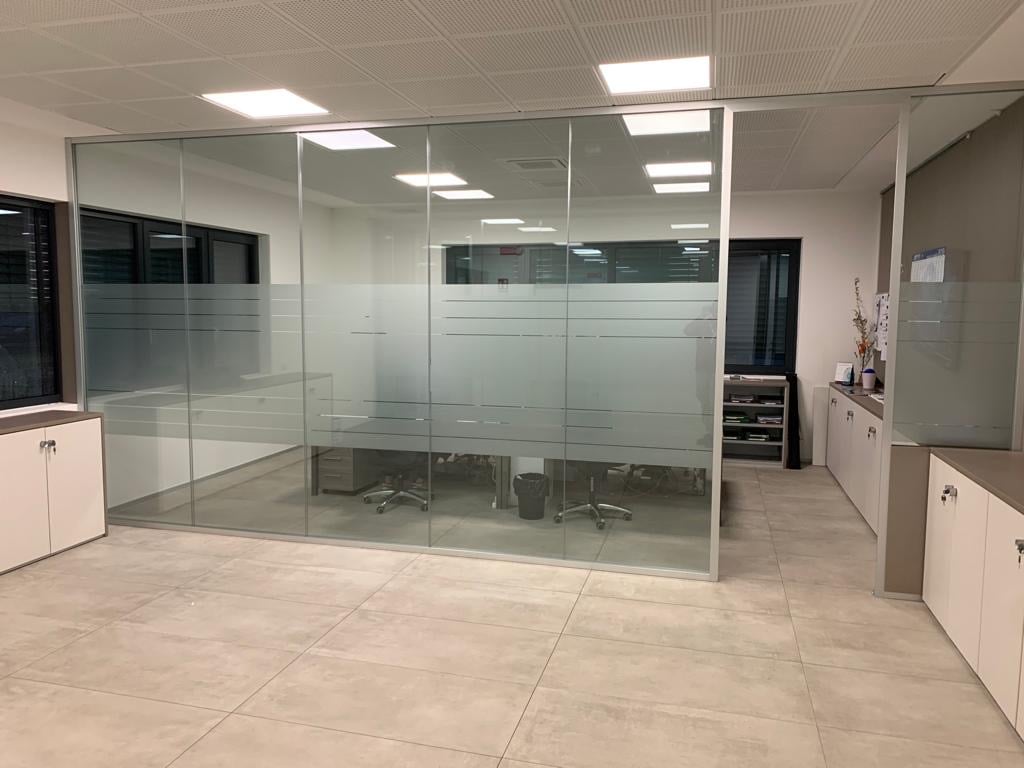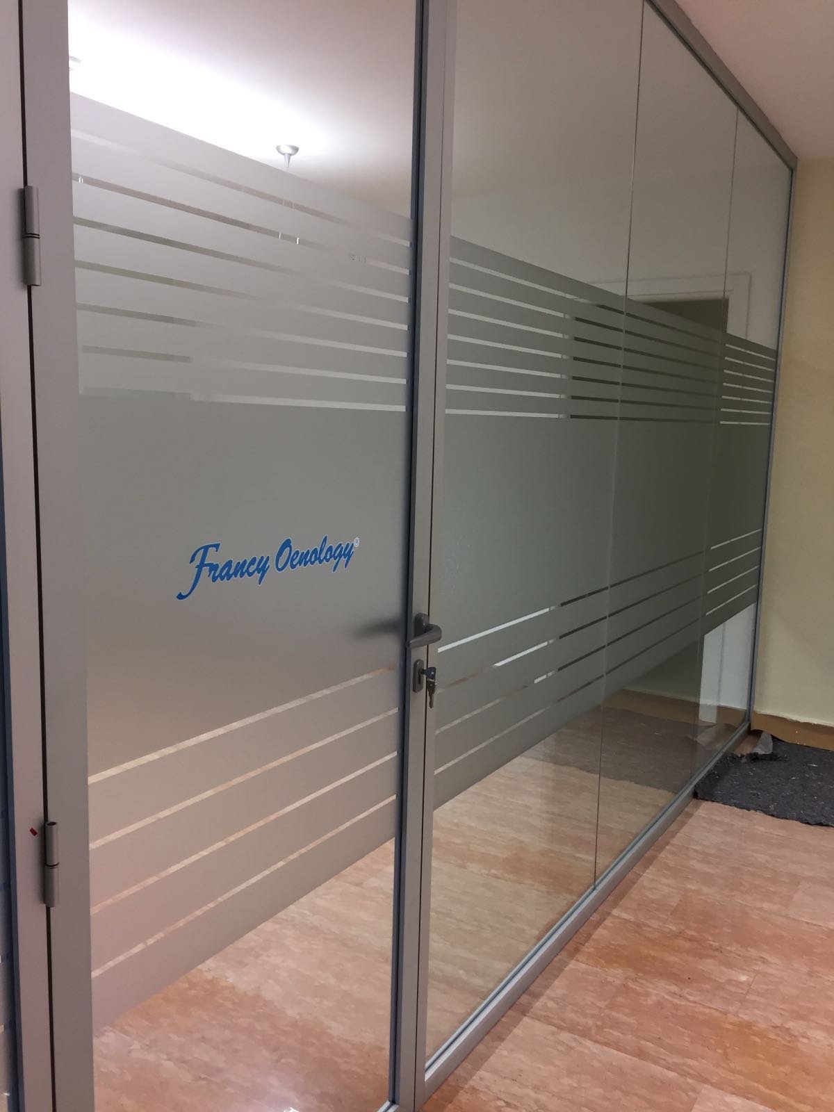 Le vetrofanie per negozi non si limitano alle sole vetrine infatti ultimamente vengono usate anche all’interno di uffici per dividere gli ambienti in modo elegante e originale con la pellicola effetto sabbiato o satinato, inoltre l’uso del vetro al posto delle pareti permette di avere ambienti più luminosi.